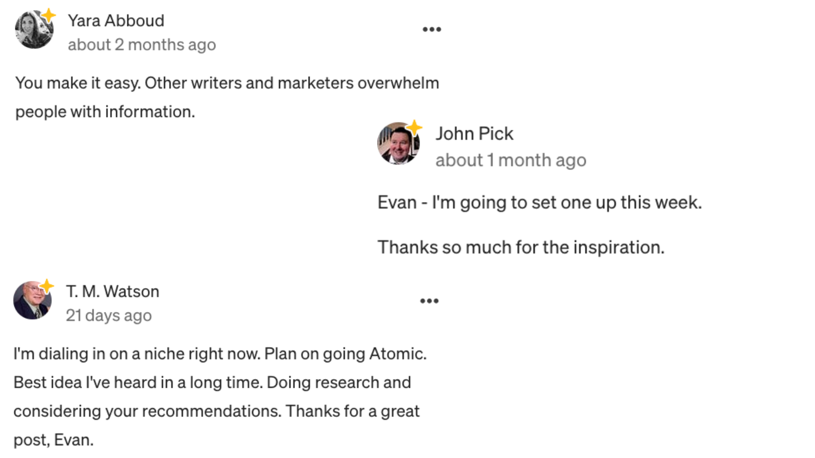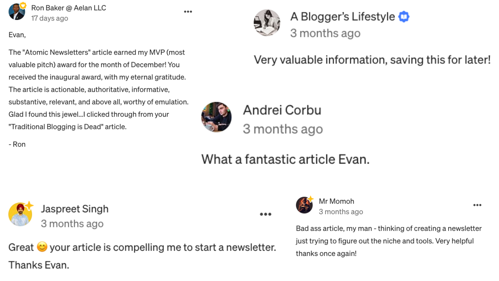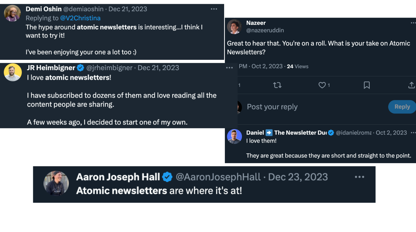 Now...If you're not sure what an "atomic newsletter" is, let me quickly explain.A while back, I noticed a trend emerging in the newsletter community and wrote an article about it on Medium.Here's what people had to say: