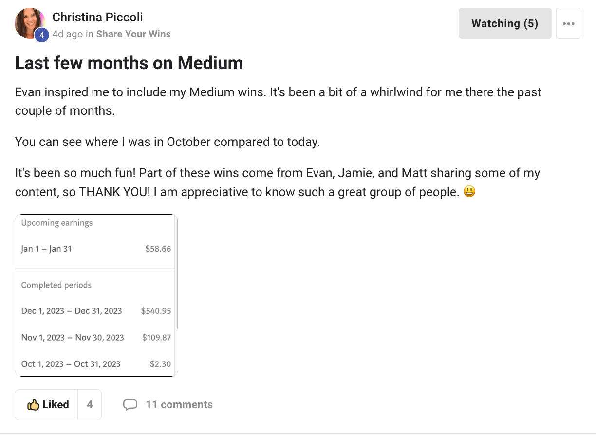 It's a good question.And...Before I answer, you have to realize a few things.Atomic Newsletters don't just have ONE income stream.They have several.Income from the Medium Partner Program is just ONE fraction of the income you will generate.Just look at what Christina was able to generate after just 3 months of using the Atomic Newsletter System™️: